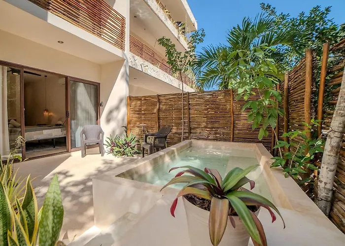 To enjoy your vacation in Tulum, stay at Modern Condo With Pool Fast Wifi Perfect Tulum, which is about a 15-minute drive from Tulum Archaeological Site and 2.5 miles from Grand Cenote Cave. For enjoyable leisure time, the apartment provides guests with a private pool and a private garden complete with a sun terrace.